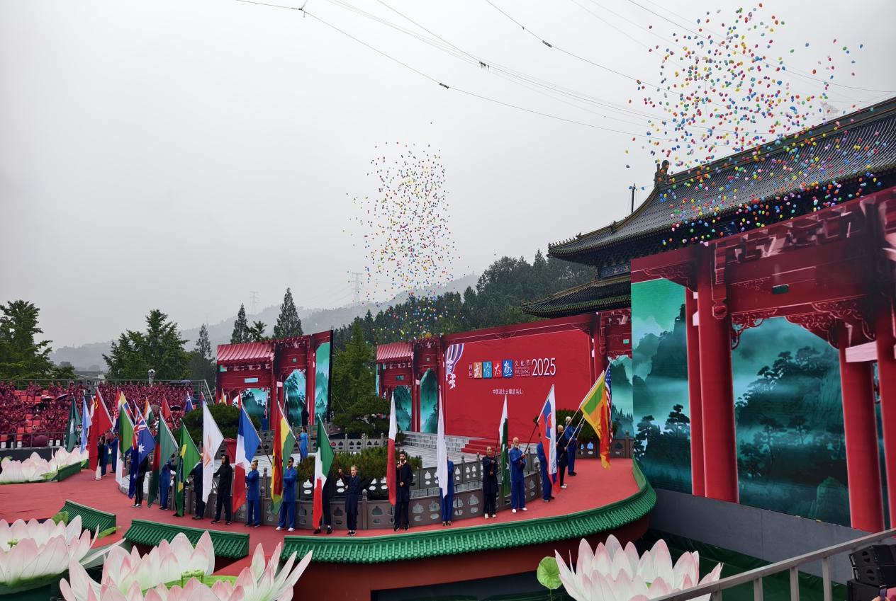 ▲2025年10月25日,来自世界各国的运动员代表擎旗参加2025国际武当太极文化节开幕式。(徐刚摄)