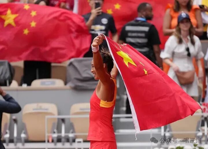2024年8月3日,巴黎奥运会网球女单决赛,郑钦文身披国旗庆祝夺冠。