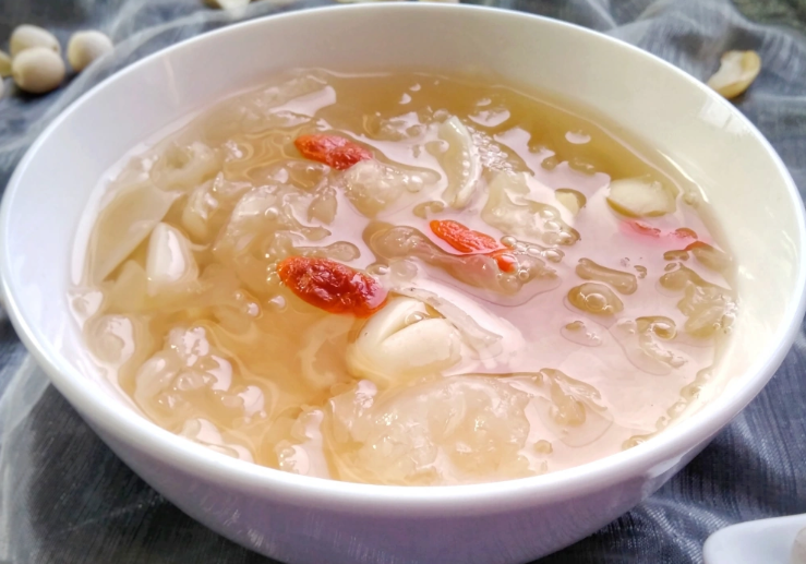 是秋冬的经典清补甜品,立冬后室内取暖会使空气干燥,这款甜品能润肺生津、滋阴养胃。制作时可选配少量枸杞,但注意冰糖用量不宜过多。