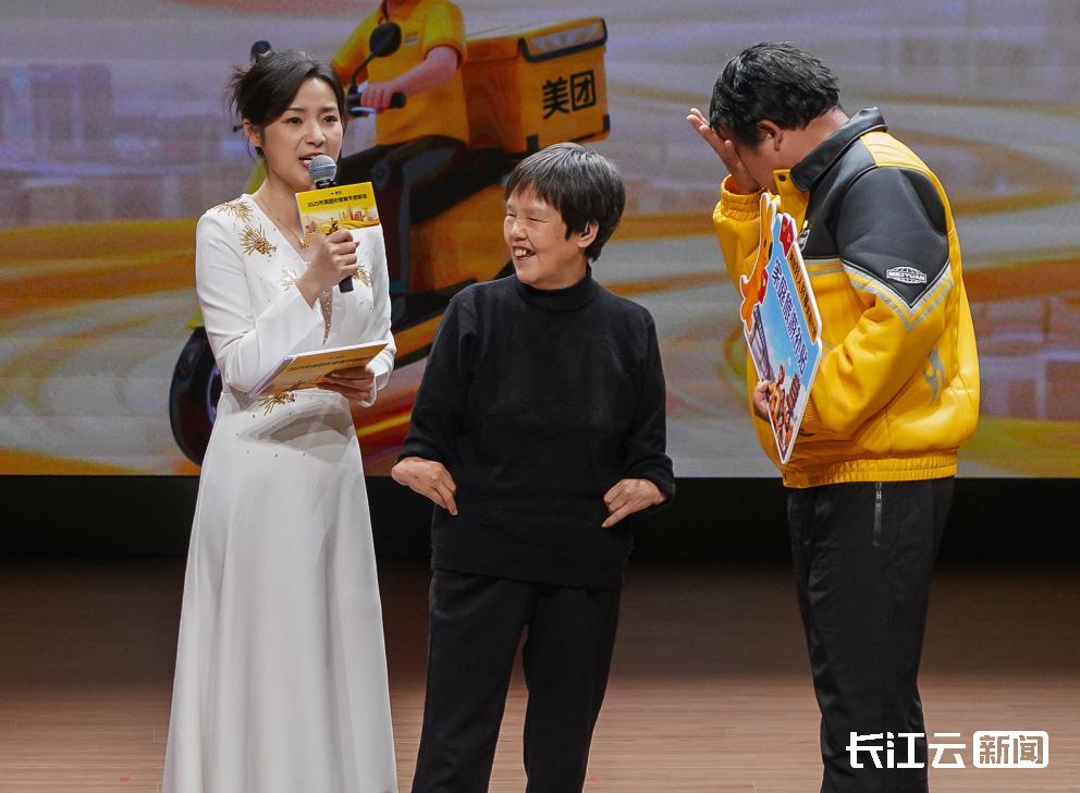 ▲活动现场,潘大姐上台对照顾她十余年的骑手司照天表示感谢 摄影:肖颢 李辉