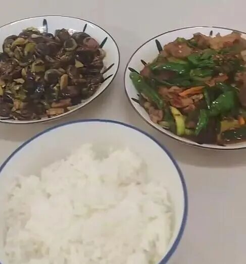 不一会儿,邓迎松为货车司机现炒了一盘青椒肉丝、一盘豌豆米,然后盛了一大碗米饭。“给你做了一点饭,希望你不要嫌弃。”她笑着说。