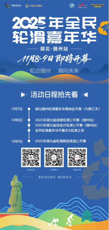 此外,11月7日-9日将同步开展轮滑嘉年华展销会,11月8日至9日还将举办湖北省速度轮滑公开赛、自由式轮滑公开赛及轮滑刷街竞速公开赛,多场赛事接连上演,邀市民共赴轮滑狂欢。