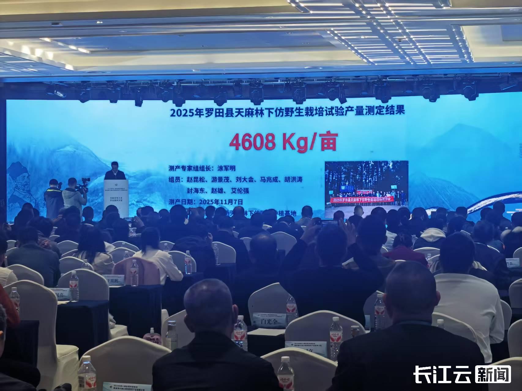 11月8日上午,第八届全国天麻会议暨首届大别山道地药材产业发展大会在黄冈市隆重开幕。长江云新闻记者从会上了解到,经过中国菌菇协会组织测产专家小组现场测定,罗田薄刀峰林场天麻林下仿野生栽培基地平均亩产高达4608公斤。