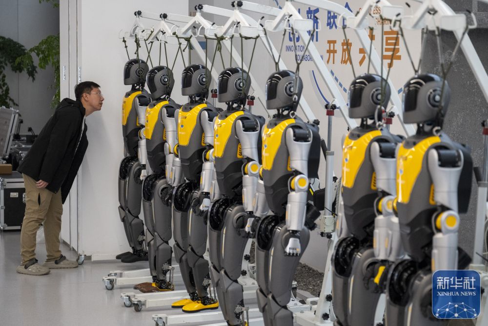 ↑ 11月6日,观众在湖北人形机器人创新中心参观。新华社记者 伍志尊 摄