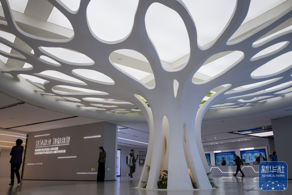 ↑ 11月6日,观众在武汉产业创新发展研究院参观。新华社记者 伍志尊 摄