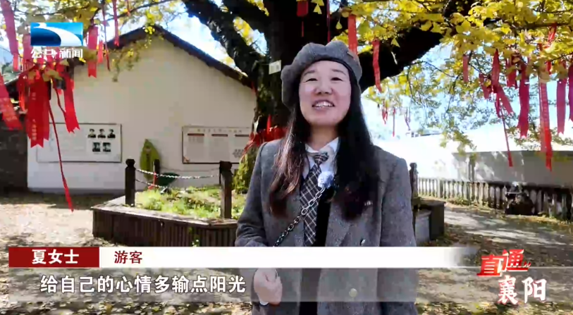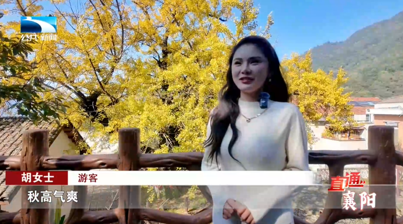 游客 胡女士:秋高气爽,风景很漂亮,尤其是这个银杏树。