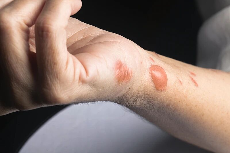 2.如皮肤已出现水疱,可先用碘伏消毒,后去医院做进一步的处理。