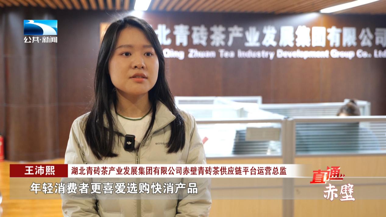 位于赤壁市羊楼洞茶文化生态产业园内的直播间里,电商主播正在卖力吆喝,推介赤壁青砖茶。