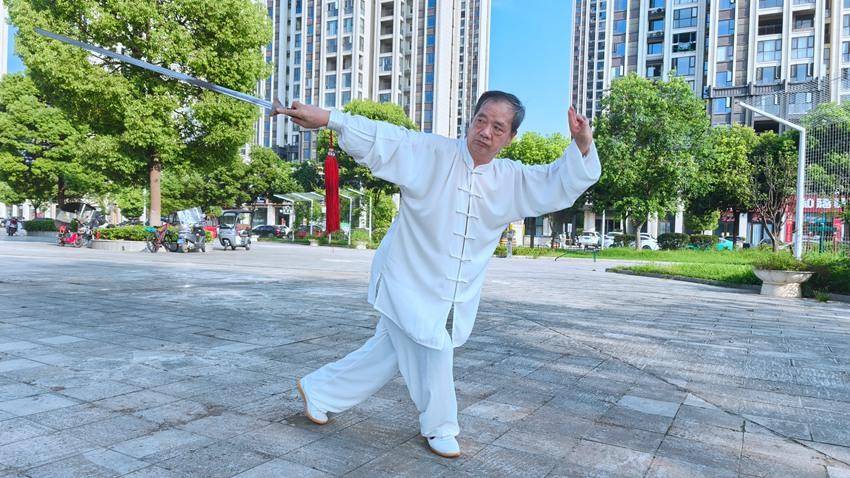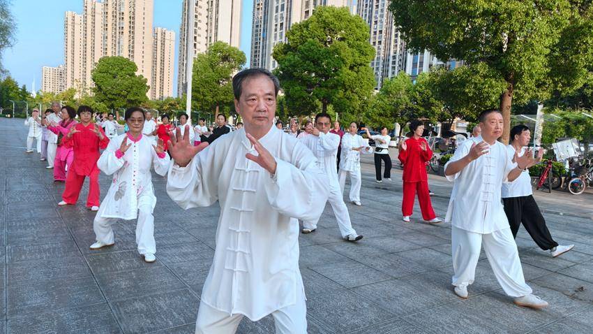11月9日清晨,在襄阳市谷城县粉水广场上,77岁的党员、退休干部、太极老师陈天保正传授国家推广竞赛套路太极拳“白鹤亮翅”。他将每一招式都循着拳理和拳法细细拆解,只为让老年学员们精准领悟要义,达成身心合一的修习境界。