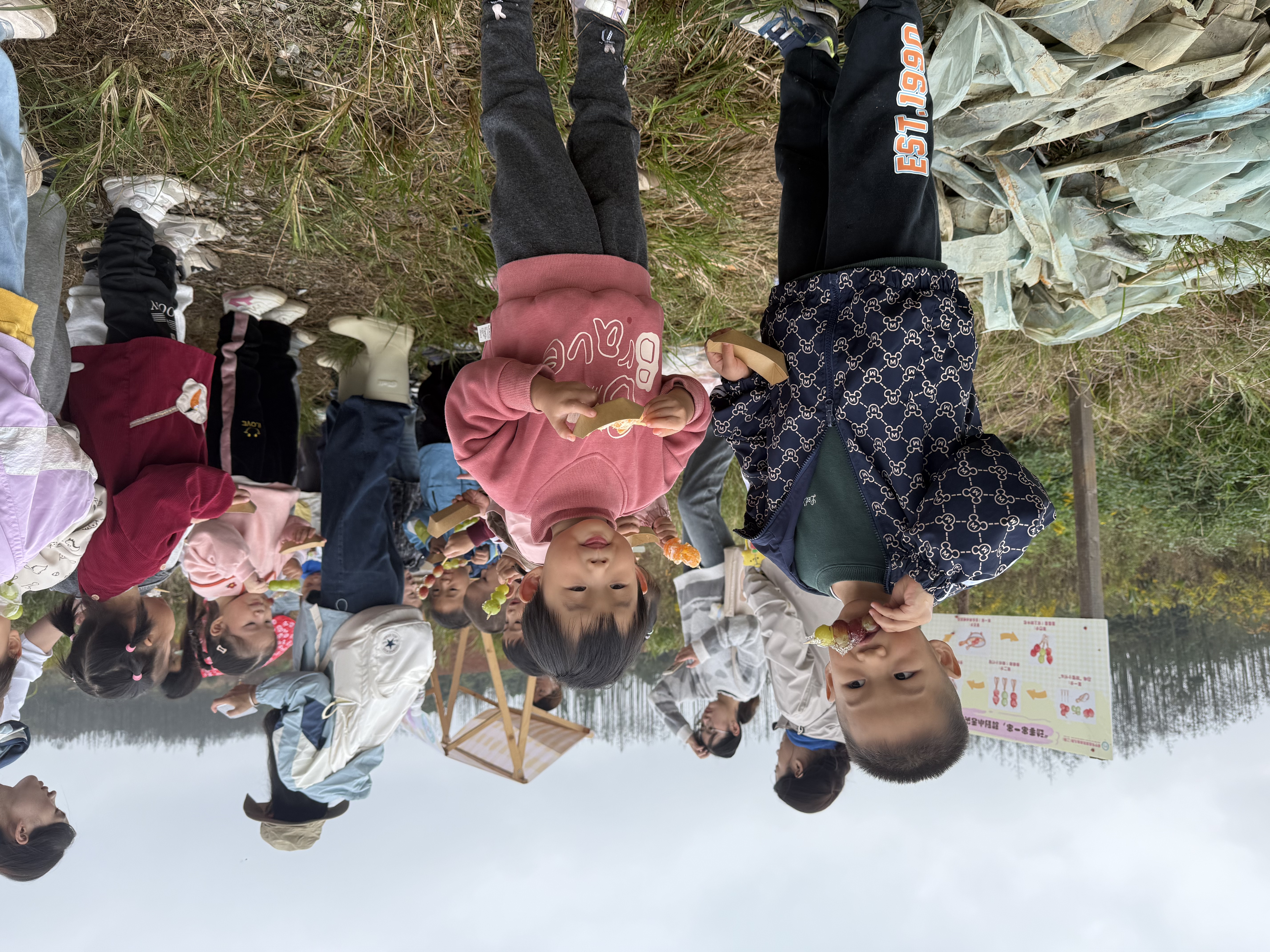 红薯种植区则成了孩子们的“欢乐天地”。在这里,孩子们化身“小农夫”,拿起小铲子、小耙子,蹲在地上认真刨土搜寻红薯。每当一个个圆润饱满的红薯从泥土中“破土而出”,田间就会响起阵阵惊喜的欢呼声。之后,孩子们又参与到烤红薯与做红薯圆子的环节中:看着红薯在炭火中慢慢变熟,散发阵阵香甜;在老师的悉心指导下,将红薯泥与糯米粉混合搅拌,再一点点揉搓成圆润的红薯圆子。尽管动作略显稚嫩,但每一个孩子都全神贯注,充分展现出对劳动的热爱与专注。