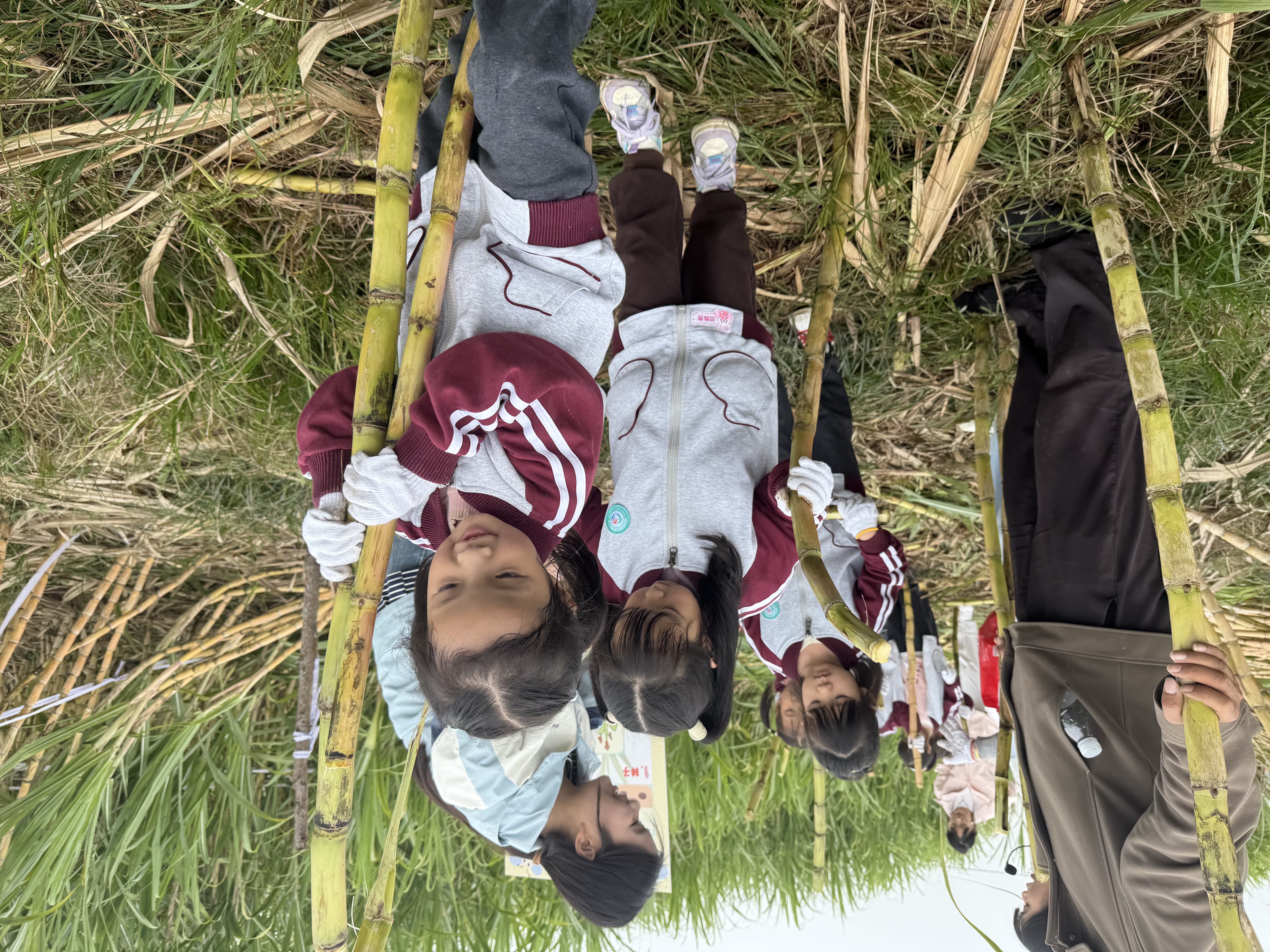 转战甘蔗种植区,欢乐氛围更浓。孩子们或两人一组或三人一队,齐心协力将一根根沉甸甸的甘蔗搬运到指定地点,即便汗水浸湿衣角,也丝毫未减热情,脸上始终洋溢着满满的成就感。随后,大家不仅亲手参与甘蔗榨汁,看着清甜的汁水缓缓流出,还一起制作酸甜诱人的水果糖葫芦。咬一口糖葫芦、喝一口甘蔗汁,甜蜜的滋味在口中蔓延,孩子们在分享美味中,深刻体会到劳动成果与大自然馈赠的珍贵。