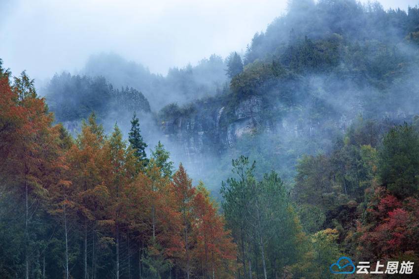 建南的秋,是立体的,是流动的,更是有灵魂的。它不像江南秋景那般婉约,也不似北方秋景那般壮阔,却有着独属于峡谷的坚韧与灵动。水杉的红,是历经风霜后的沉淀;峡谷的静,是岁月打磨后的从容;云雾的柔,是自然馈赠的诗意。在这里,秋不仅是季节的更迭,更是生命的沉淀与升华。树叶从翠绿到赤红,从繁盛到飘落,看似是生命的落幕,实则是为来年的新生积蓄力量,正如人生,唯有历经岁月的洗礼,才能沉淀出从容与智慧,绽放出最动人的光彩。