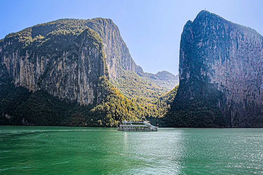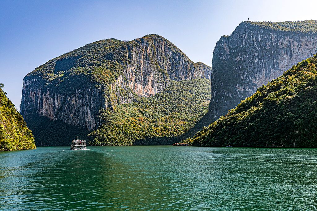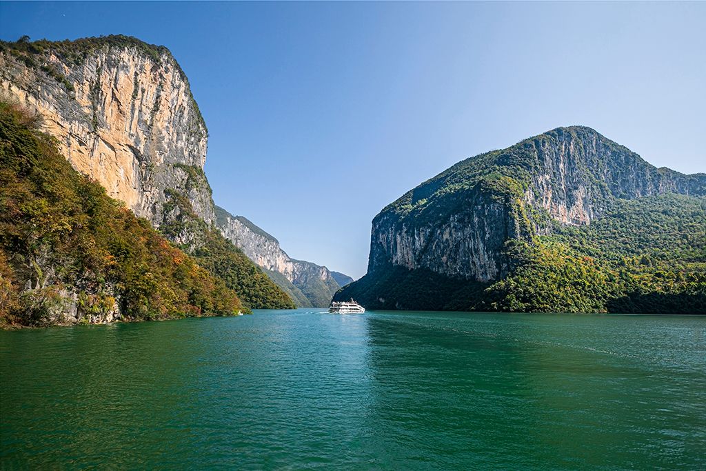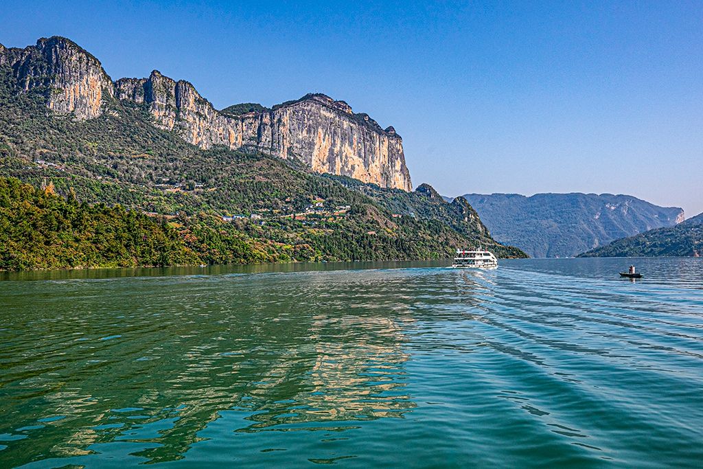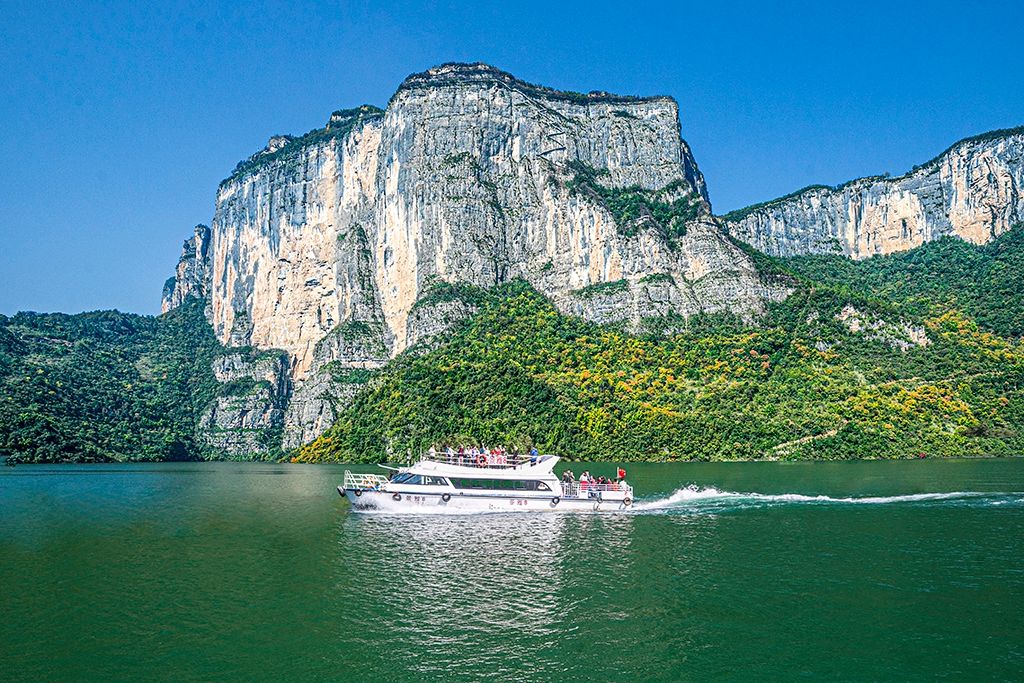 晚秋时节,步入清江画谷,便与景阳清江的秋色不期而遇,撞了个满怀。清江绿水如绸,波光潋滟,景色分外醉人。两岸峭壁如一道道斑斓的屏风,透出清亮的红、明艳的黄、青翠的绿,将这一江秋意点缀得浓郁而饱满,令人心旷神怡。此刻,清江之畔的蝴蝶岩、双石柱、板壁岩,古道景阳关以及那延绵七千米的巍峨峭壁,在秋的渲染中更显绚丽多姿,平添几许诗情与画意。