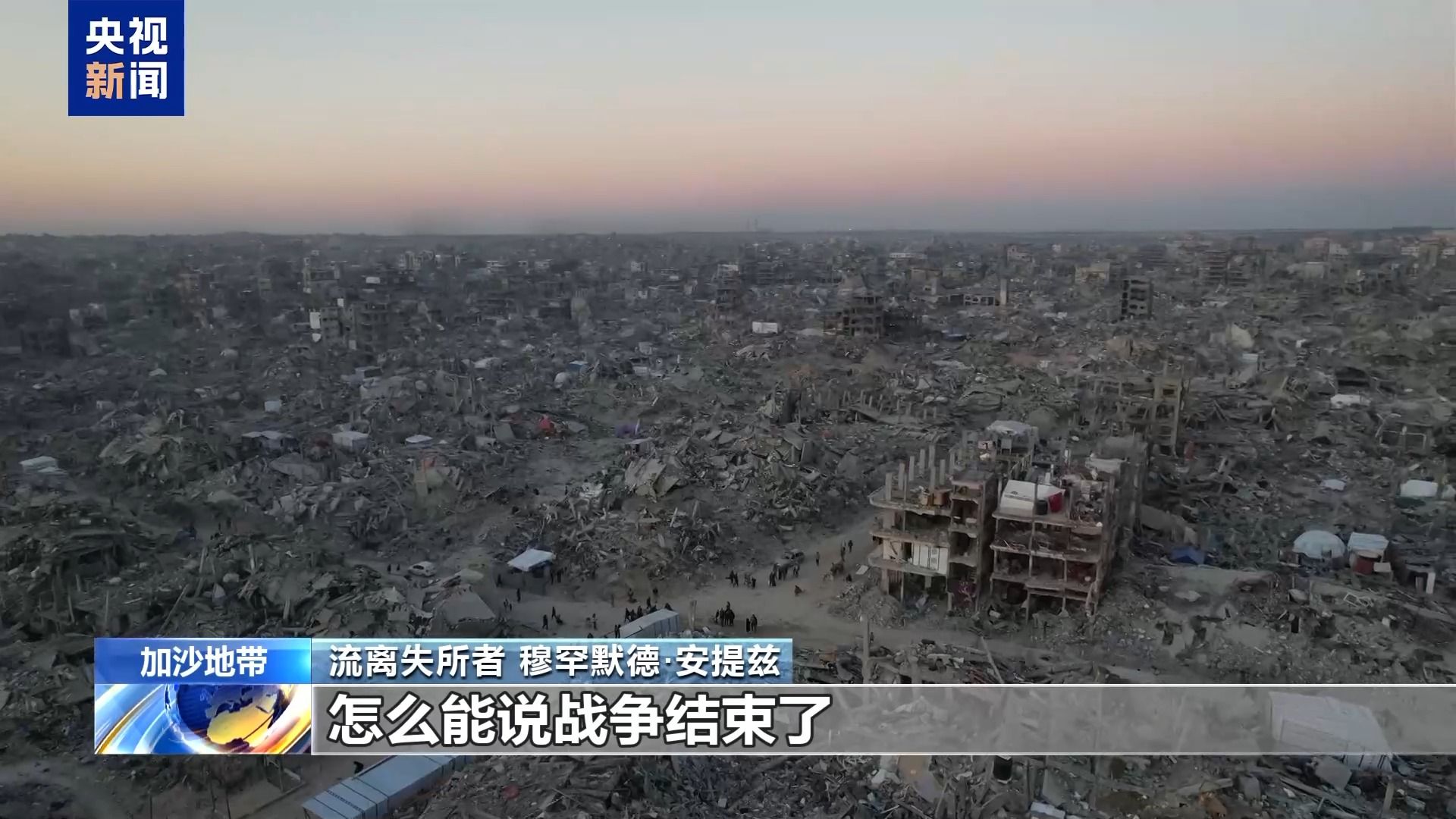 流离失所者 穆罕默德·安提兹:他们说,战争结束了。怎么会呢?我的房子被完全炸毁,怎么就算结束了?边境没有完全开放,没有充足的食物或援助,怎么能说战争结束了?我根本没有感觉到结束,因为我们依然生活在战争的阴影里。