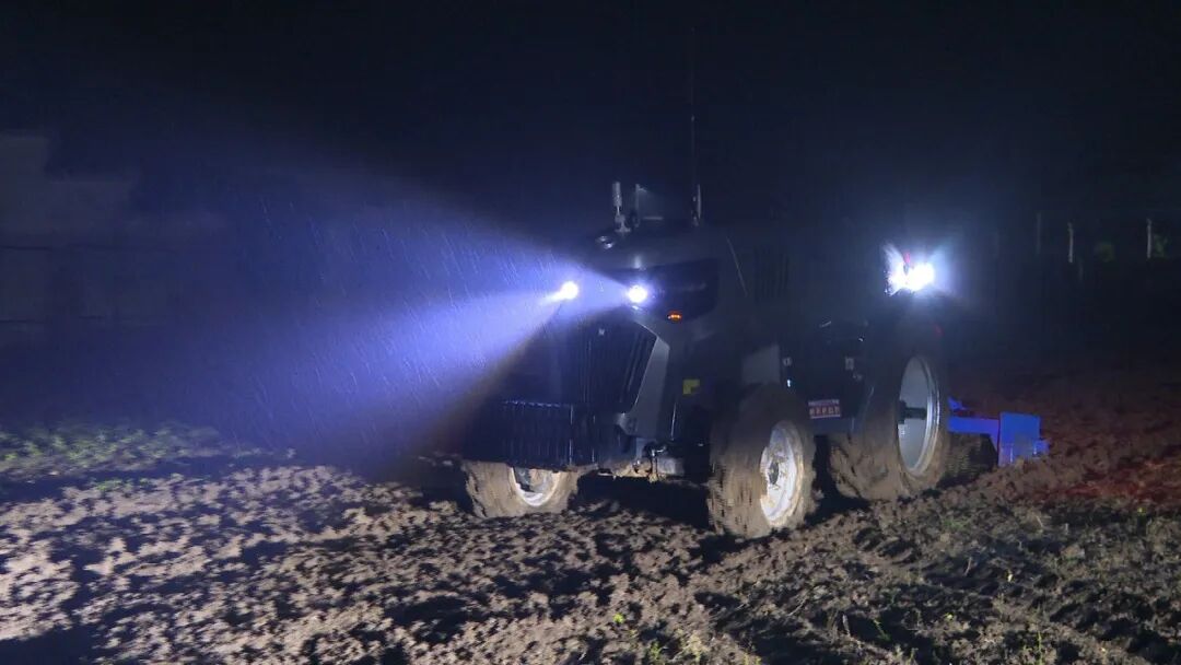 11月10日晚,安阳镇李营村田地里,鸿鹄T70智能农机正自主进行旋耕作业。该农机是郧阳区引进的十堰国科鸿鹄科技有限公司核心产品,采用新能源驱动,搭载北斗定位系统,可实现无人操控、路径规划及全流程智能化作业,大幅提升耕种效率。十堰国科鸿鹄科技有限公司技术人员陈生强介绍,通过作业区域标定,即可实现在规定区域内自主路线的规划,按计划当晚将进行20亩旋耕作业。
