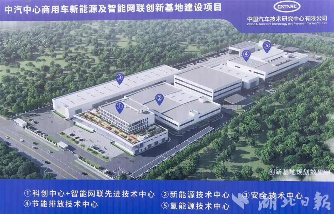 项目总投资10亿元,选址于武汉经开区凤亭二路,占地面积约132亩,分两期进行建设,一期建筑面积约5万平方米,主要建筑物5栋,分别为科创中心+智能网联先进技术中心、新能源技术中心、安全技术中心、节能排放技术中心和氢能源技术中心。