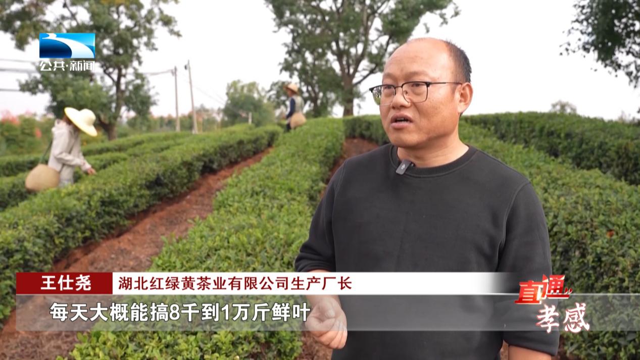 湖北红绿黄茶业有限公司生产厂长 王仕尧:带动的茶农,辐射周边的8个乡镇,在旺季的时候,每天大概有一两百人为我们采茶,每天大概能搞8千到1万斤鲜叶。
