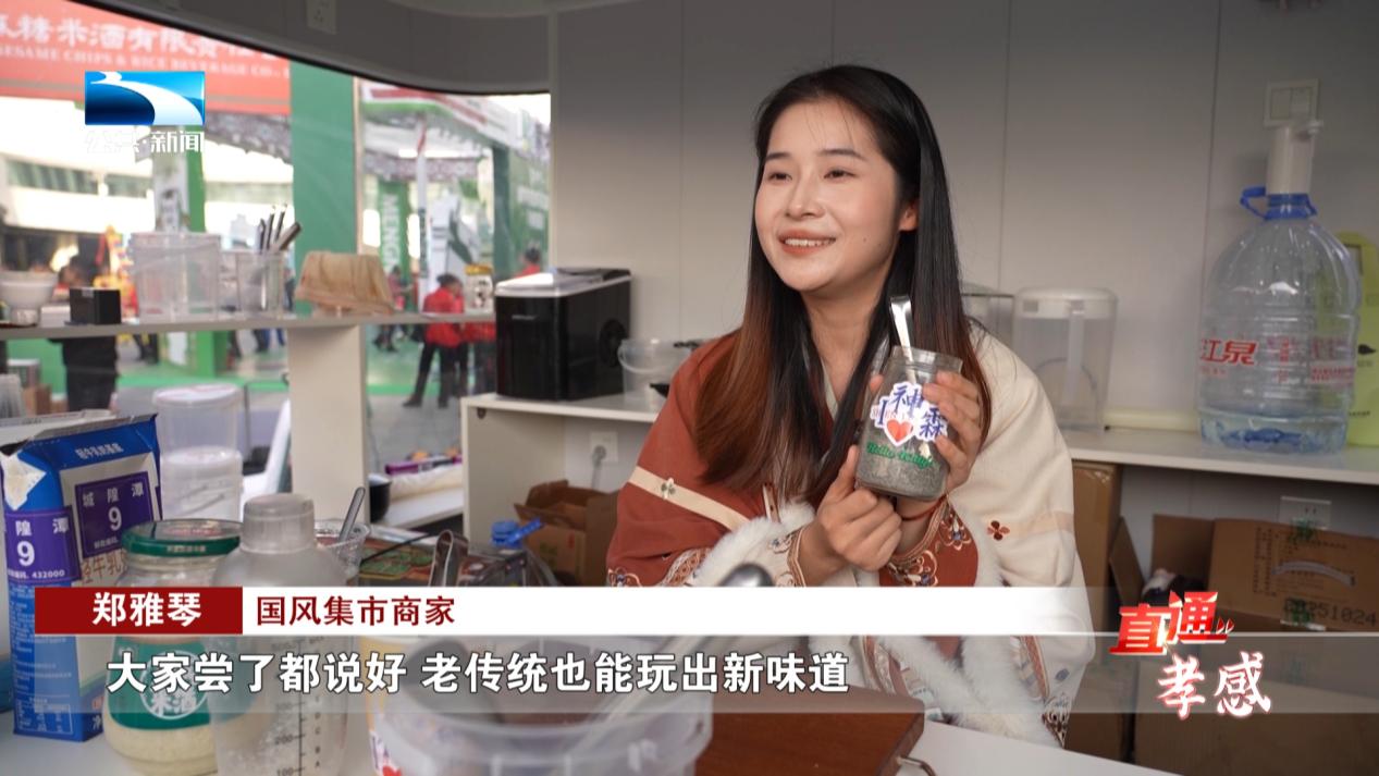 国风集市商家 郑雅琴:我们是想玩一点新花样,把咱们孝感的老味道,和现在年轻人喜欢的东西搭配在一起,你像刚刚我给大家做的这个山茶酿雪,我们在传统的奶茶上面用了我们的米酒打底,还有这个麻糖碎,麻糖碎加入之后会让奶茶的口感更丰富,大家尝了都说好,老传统也能玩出新味道。