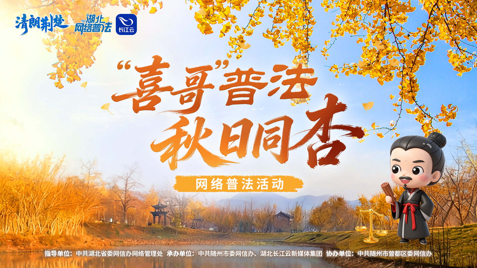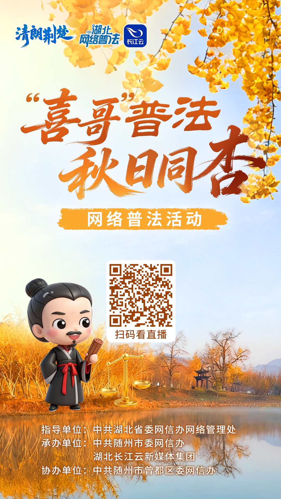 秋意正浓,法润人心。11月12日15:00,“‘喜哥’普法 秋日同杏”网络普法活动即将温暖启幕!锁定直播间,一同走进“千年银杏,十里画廊”的随州银杏谷,在漫天金黄的诗意画卷中,共赴一场别开生面的法治之旅。