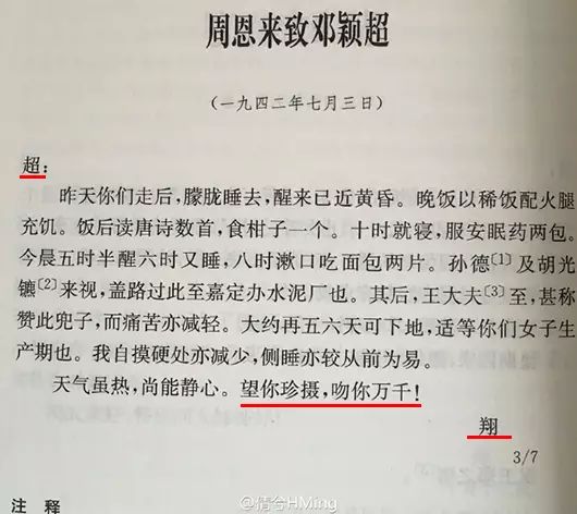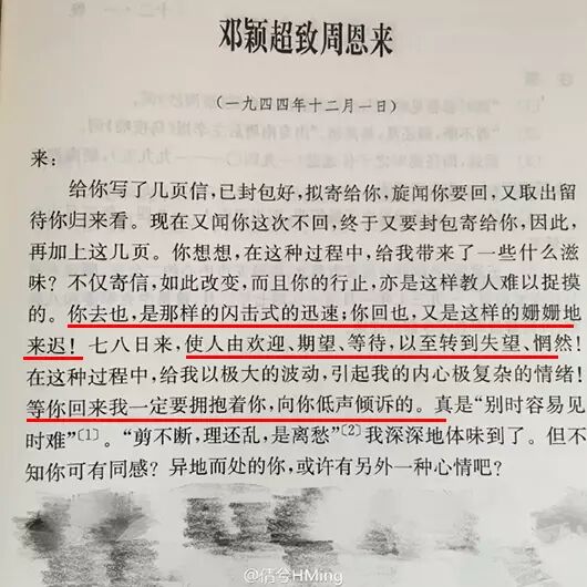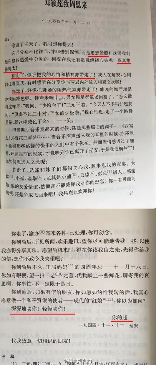 周恩来离开延安前往重庆,邓颖超开篇,“我真想你得太!”,几个字就诠释了一日不见,如隔三秋的思念之情。