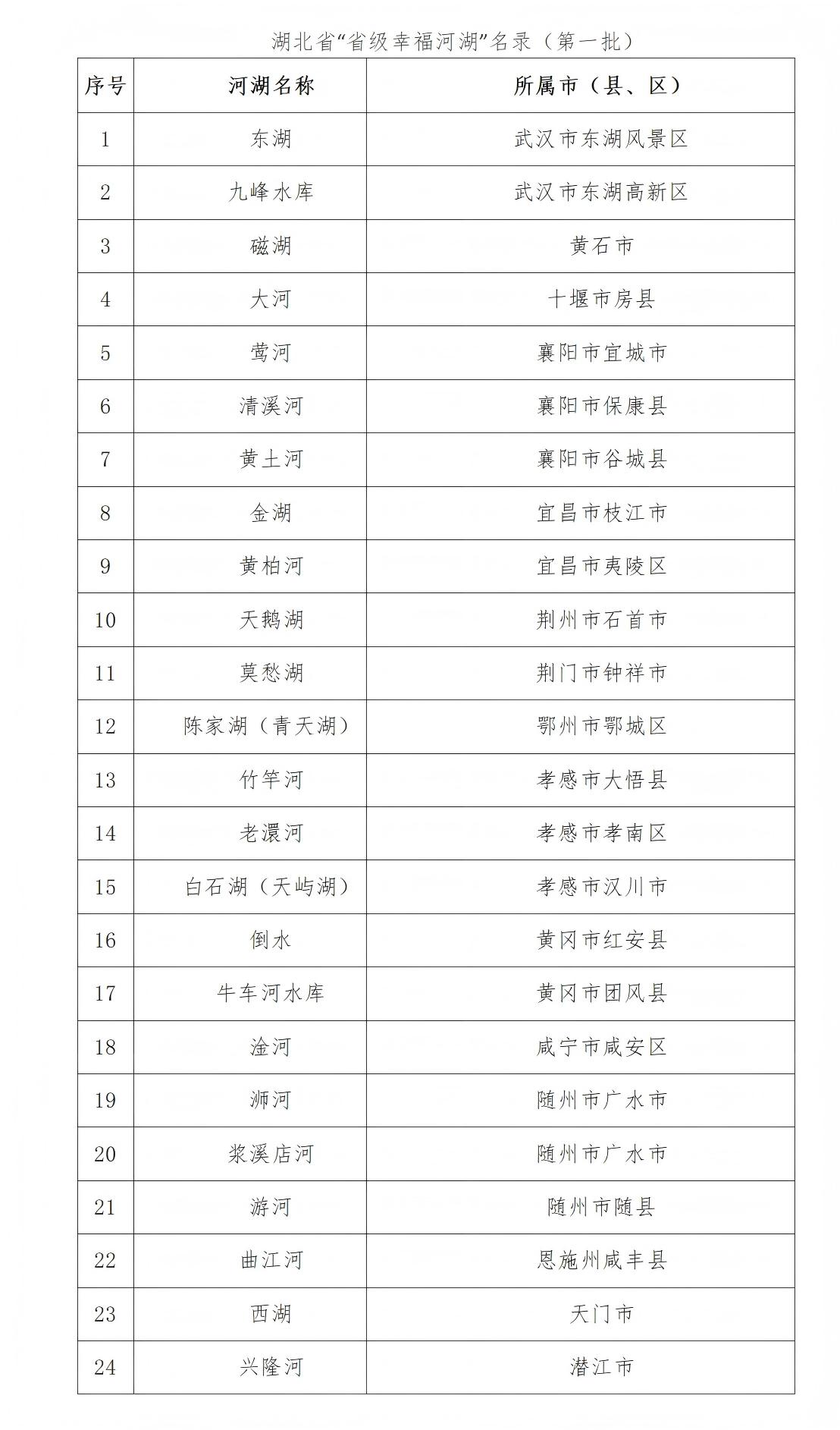 长江云新闻记者12日获悉,湖北第一批“省级幸福河湖”名录当天发布,共涉及24条(个)河(湖)。