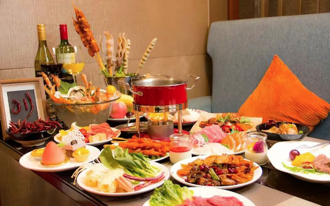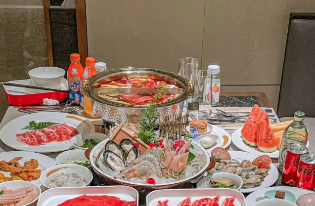 三文鱼、生蚝、吊龙火锅、甜品、饮品……