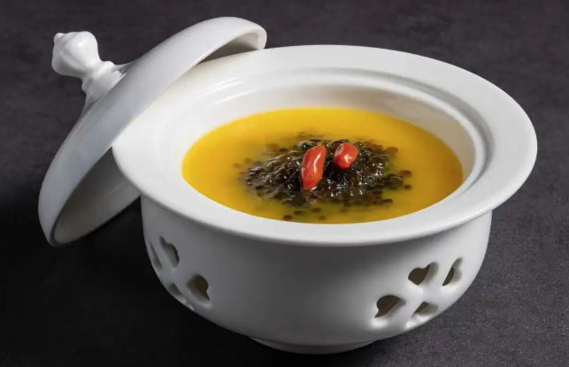 金汤葛仙米:以葛仙米为主角,配以金黄浓醇的高汤,将自然馈赠与匠心烹艺凝于一盅,既是道家“食药同源”理念的传承,亦是现代餐桌上的“翡翠金玉宴”。