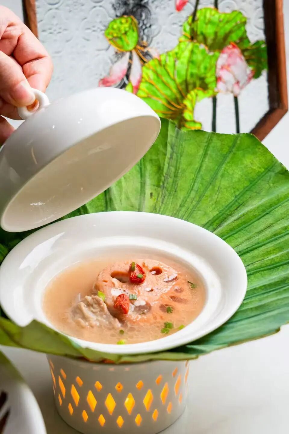 襄阳莲藕排骨汤选用襄阳特产莲藕,配以排骨,先猛火烧开,再小火慢炖1小时,汤鲜味美,莲藕绵糯清甜,排骨略带藕香,温润味美,汤中佳品。