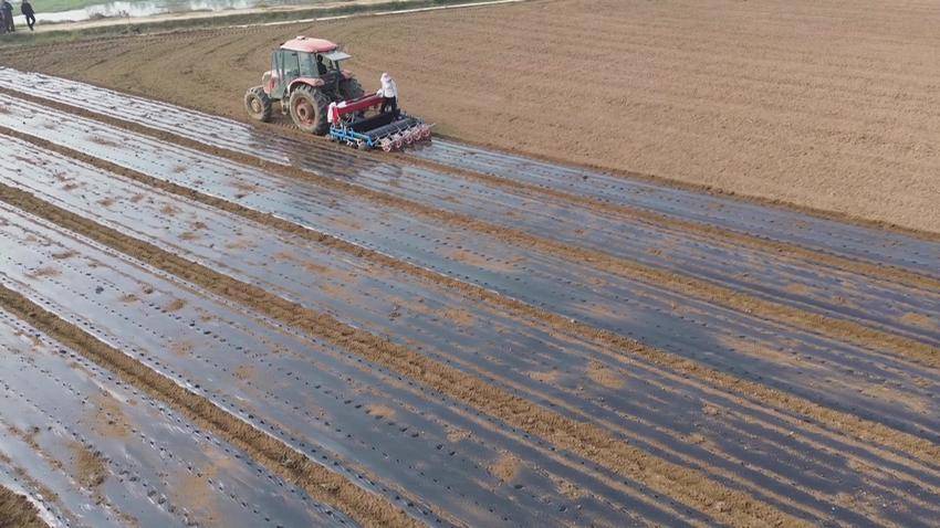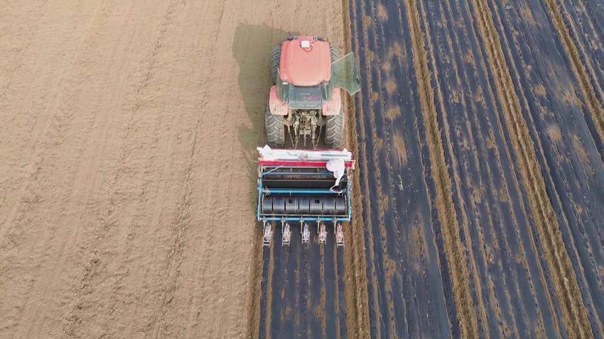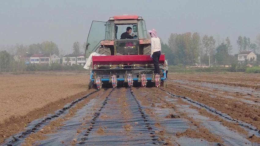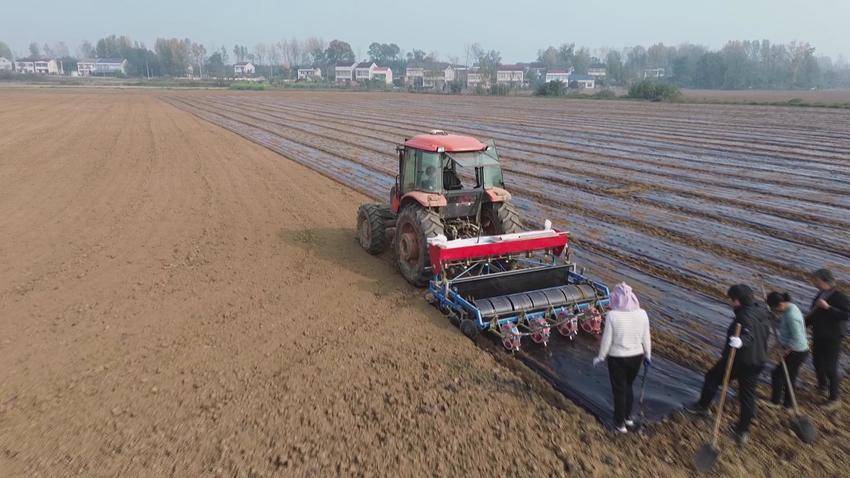 谷城县圣龙农业生产专业合作社负责人杜丽介绍:“我们正在播种的是制种油菜,采用机械化地膜覆盖技术。这层‘黑被子’不仅能保水保肥、调控地温,还能有效抑制杂草生长。合作社计划播种2000亩,预计当天即可全部完成。”