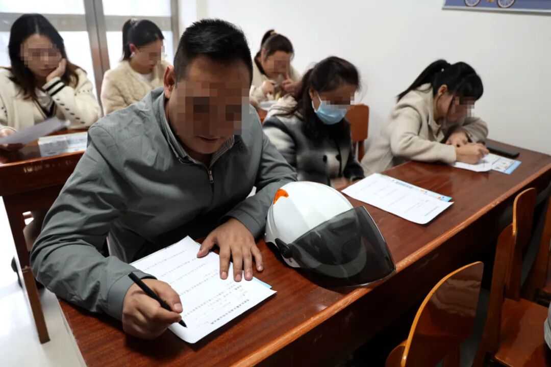 学习的最后环节,是一场由民警监督的闭卷交通安全知识测试。考试严禁学员相互讨论或搜索答案,“动真格”的考试氛围促使大家认真回顾所学知识,确保学习教育不流于形式。