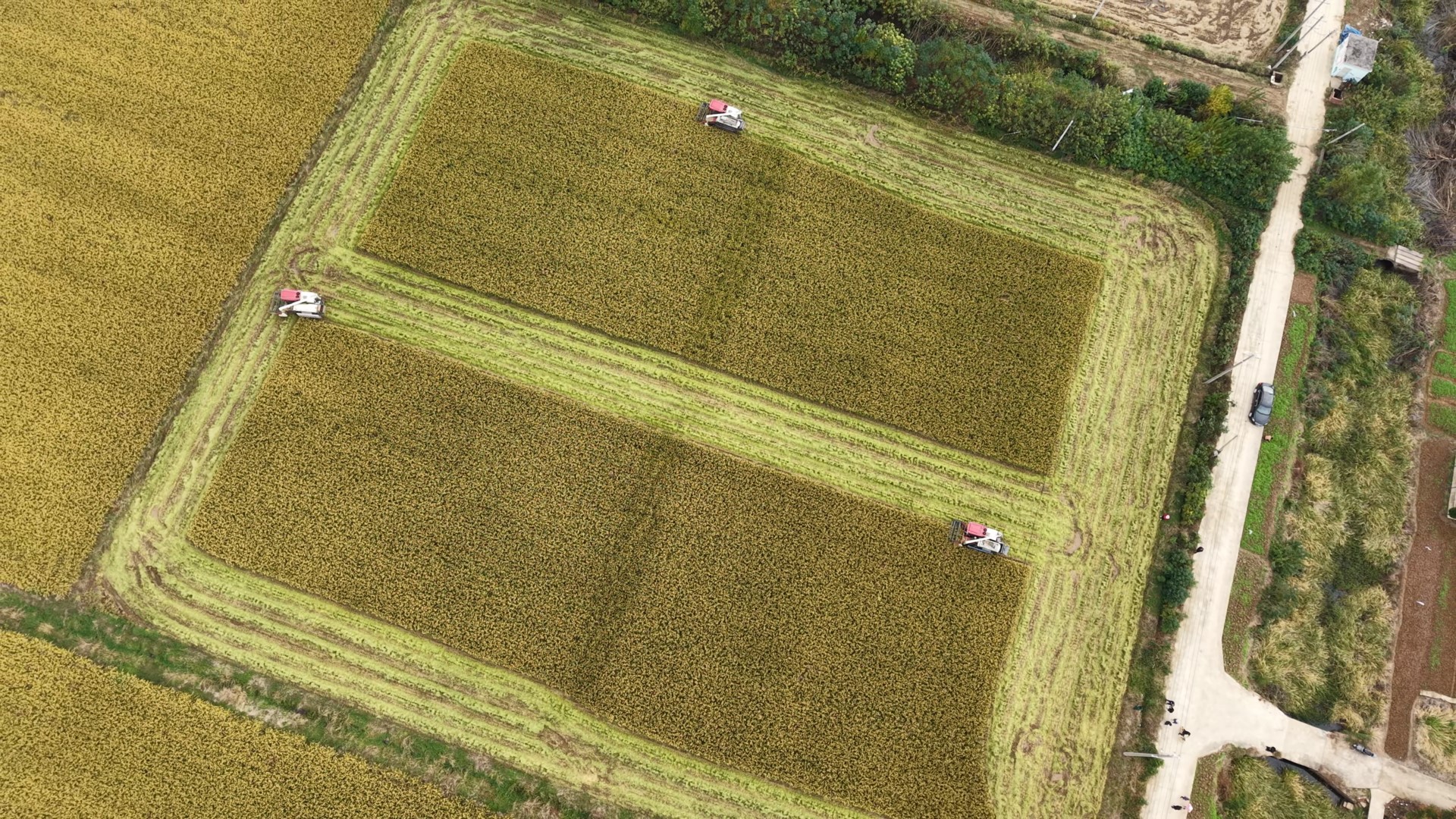 走进下辛店镇彭李村,稻田里一派丰收景象。沉甸甸的稻穗压弯了枝头,空气中弥漫着稻谷的清香。在当地“吨半粮田”示范基地水稻测产的核心现场,一体化联合收割机往来穿梭,齿轮转动间,整排稻株被整齐卷入,谷粒迅速归仓,稻秆同步还田,现场高效有序。