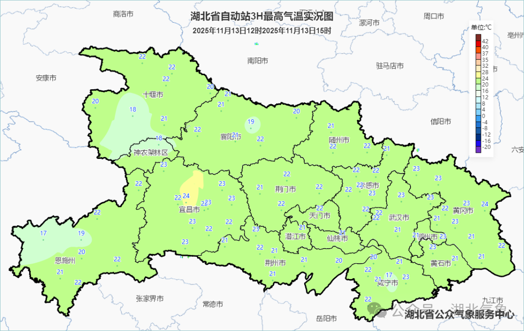 预报来源:湖北省气象台2025年11月13日16时预报