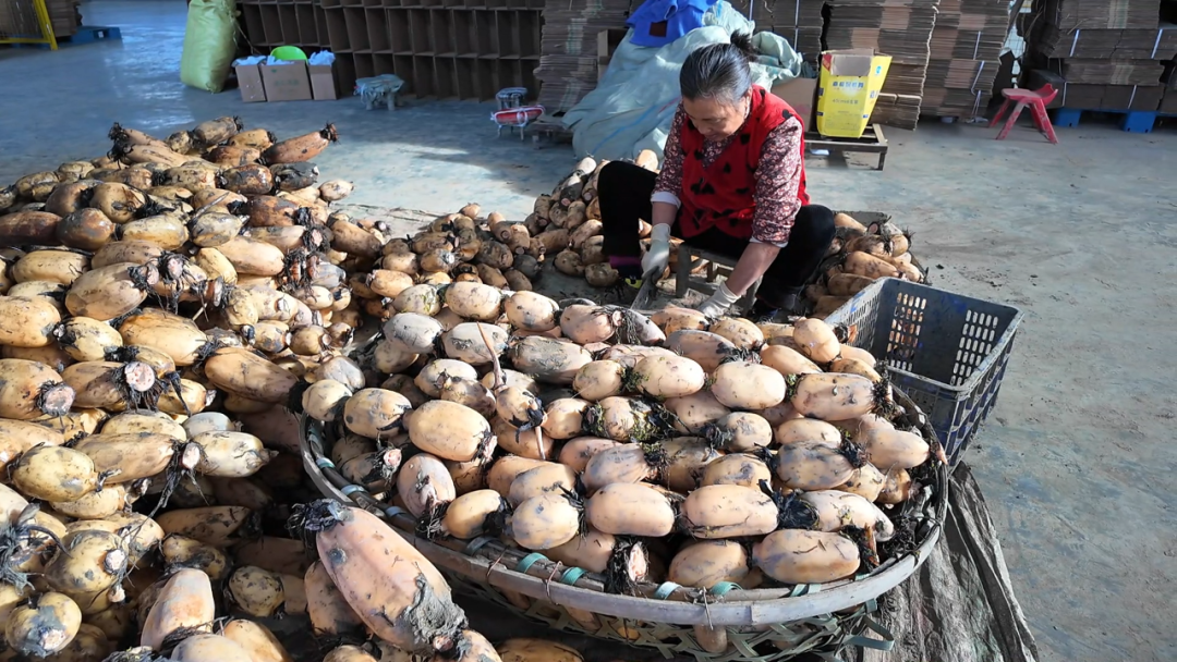 “以前我在家种地、带孙子,后来经人介绍来这儿打包莲藕。活儿不重,多劳多得,老板人也很好。”花园镇松华村村民吴友华说。