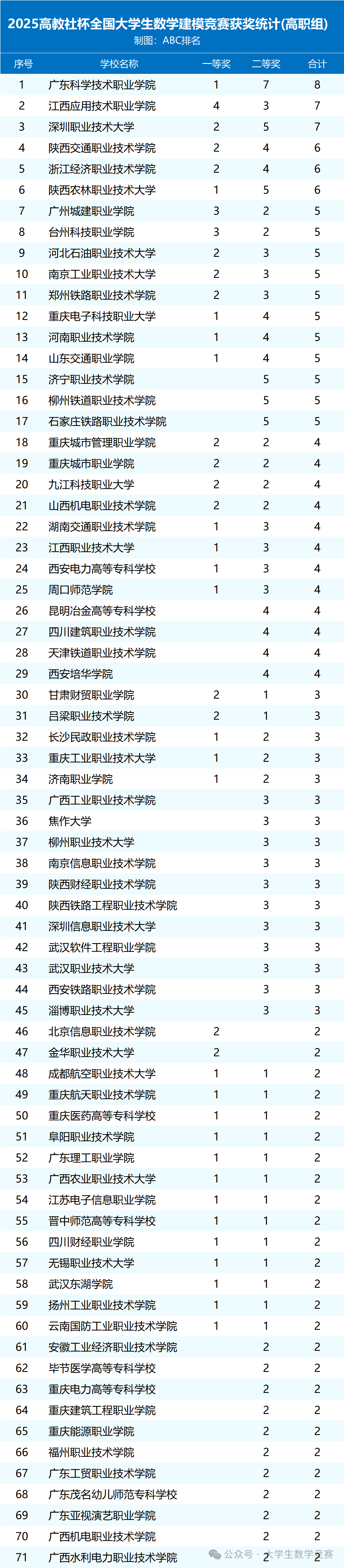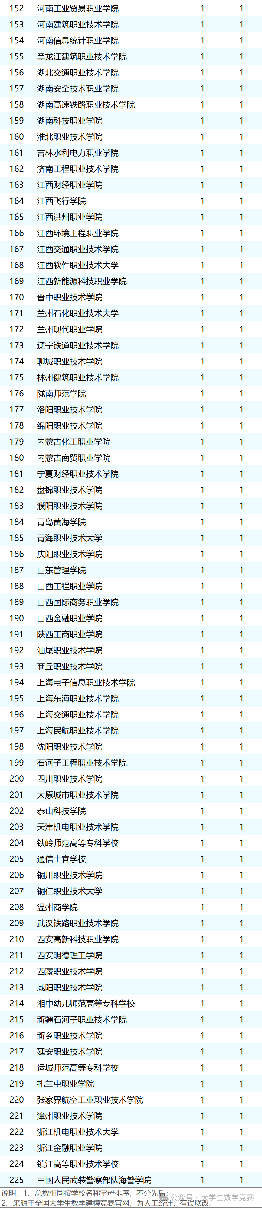 2025高教社杯全国大学生数学建模竞赛获奖统计(本科组、高职组),具体如下。