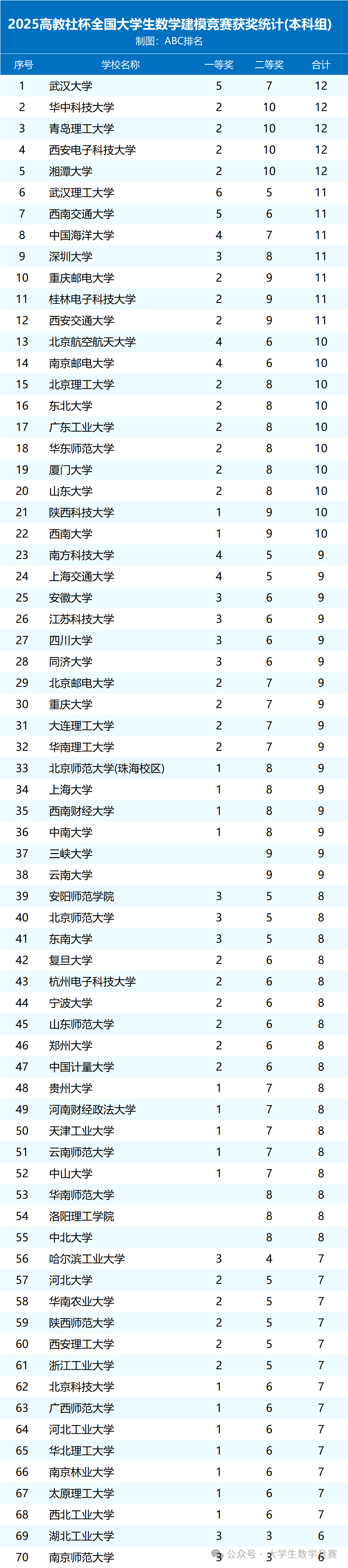 全国大学生数学建模竞赛成绩揭晓!武大华科分列一二名,武汉理工一等奖数量全国第一