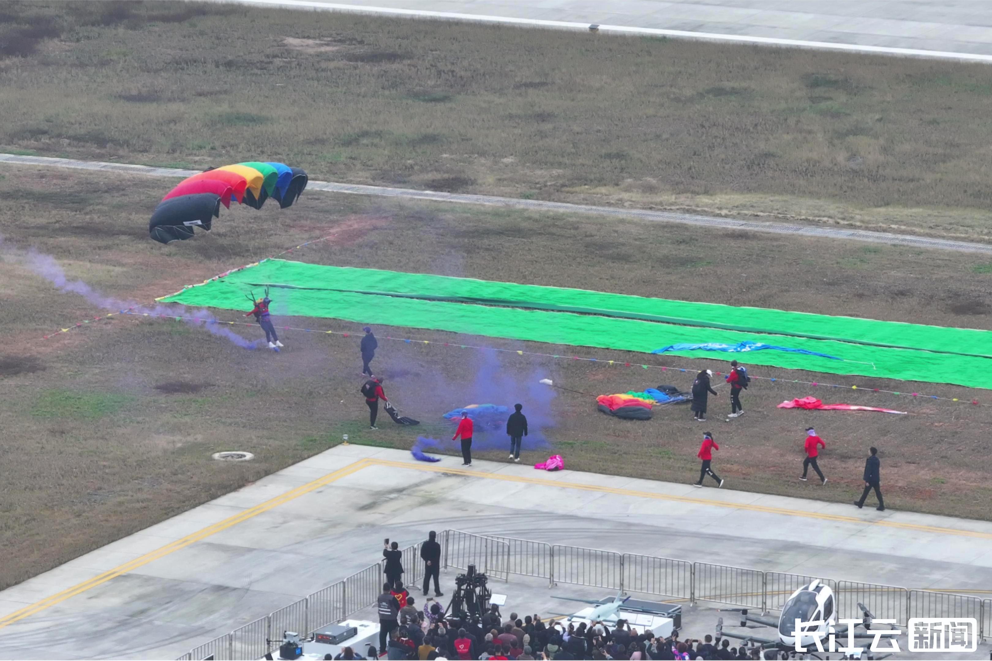 竹山通用机场占道地1800亩,不仅是竹山低空经济的核心枢纽,更凭借空域条件优越、气象稳定、适飞天数多的优势,被指定为“湖北省航空运动中心”,已成功承接国家造型跳伞队、湖北省跳伞队等多支专业队伍的常态化训练。