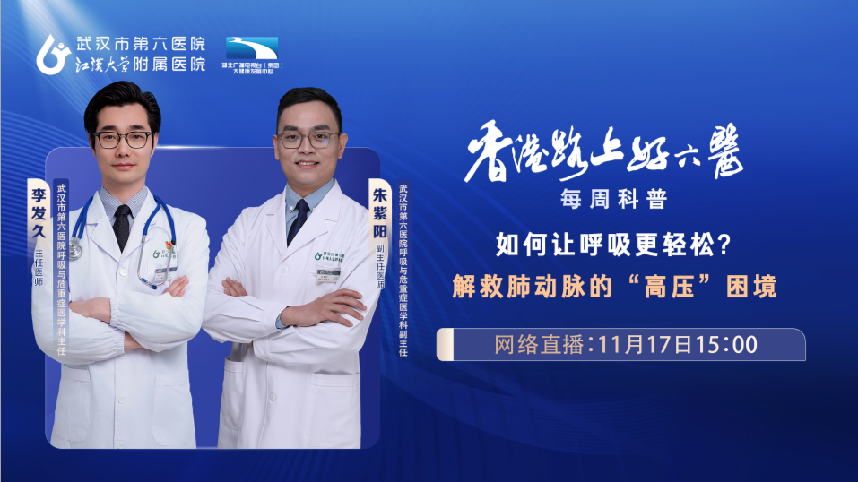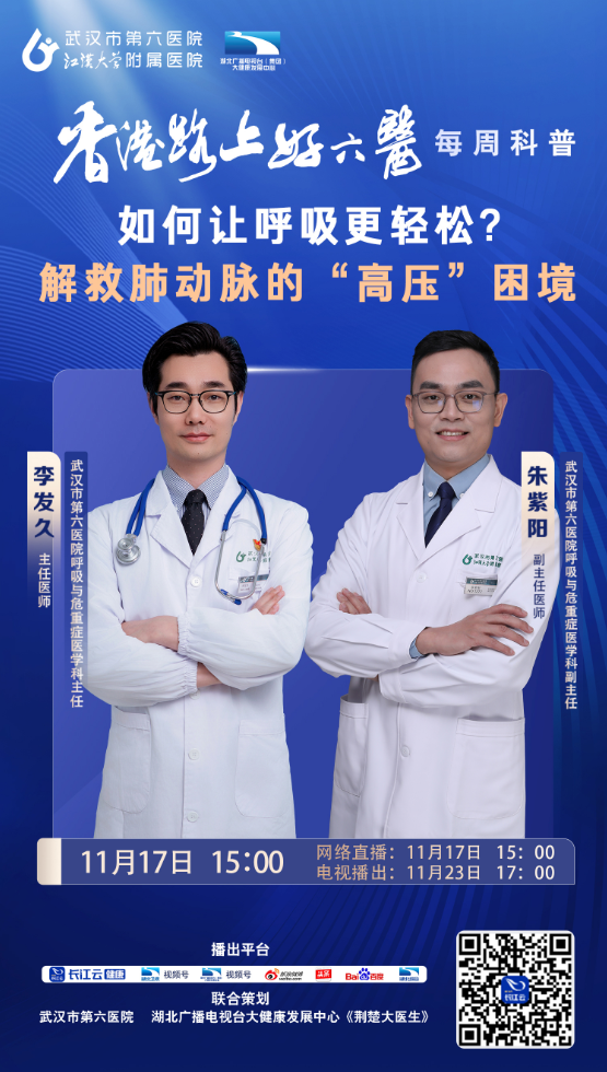 爬楼喘、胸闷、总觉得累?别误以为是老了或缺乏锻炼,这可能是肺动脉高压发出的 “求救信号”!这种被称为 “心肺系统癌症” 的疾病,误诊率高达 90%,却藏在我们身边悄悄威胁健康。11月17日 15:00,“香港路上好六医”每周科普第三期开讲。武汉市第六医院呼吸与危重症医学科主任李发久、副主任朱紫阳将带来最权威的肺动脉高压防治指南。