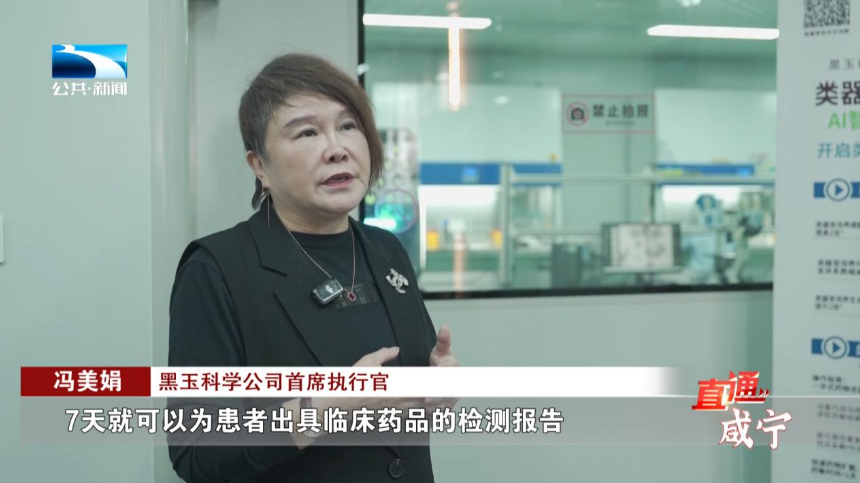 黑玉科学公司首席执行官 冯美娟:用我们这款设备3到4天就可以完成建模,药物测试的时间提前到一天就可以完成,7天就可以为患者出具临床药品的检测报告。