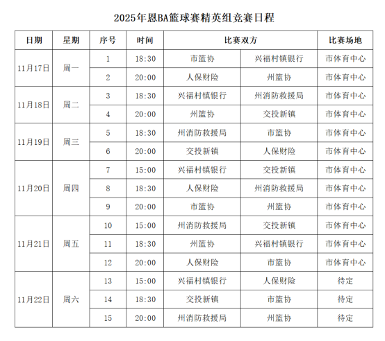 2025年(第三届)恩BA篮球赛“兴福村镇银行杯”精英赛将于11月17日在恩施市体育中心篮球馆盛大开赛!