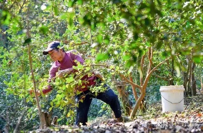 狮子岩村农户正在进行油茶采收(图源:湖北日报)