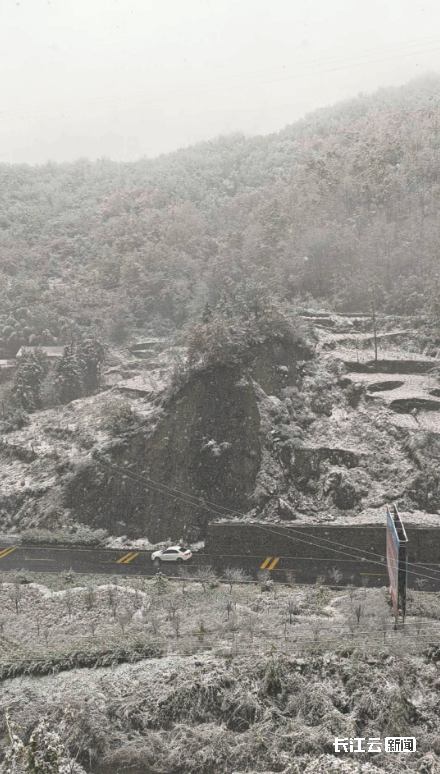 11月16日下午,十堰市郧西县湖北口坎子山村飘起雪花。长江云新闻记者从当地获悉,截至18时地面、屋顶、树枝已覆上薄雪,成为今冬湖北首个出现明显积雪的乡镇。湖北省气象台预计,未来一周省内多阴雨,大部地区气温将下降8~11℃,高山地区最低气温跌破0℃,可能出现道路结冰。