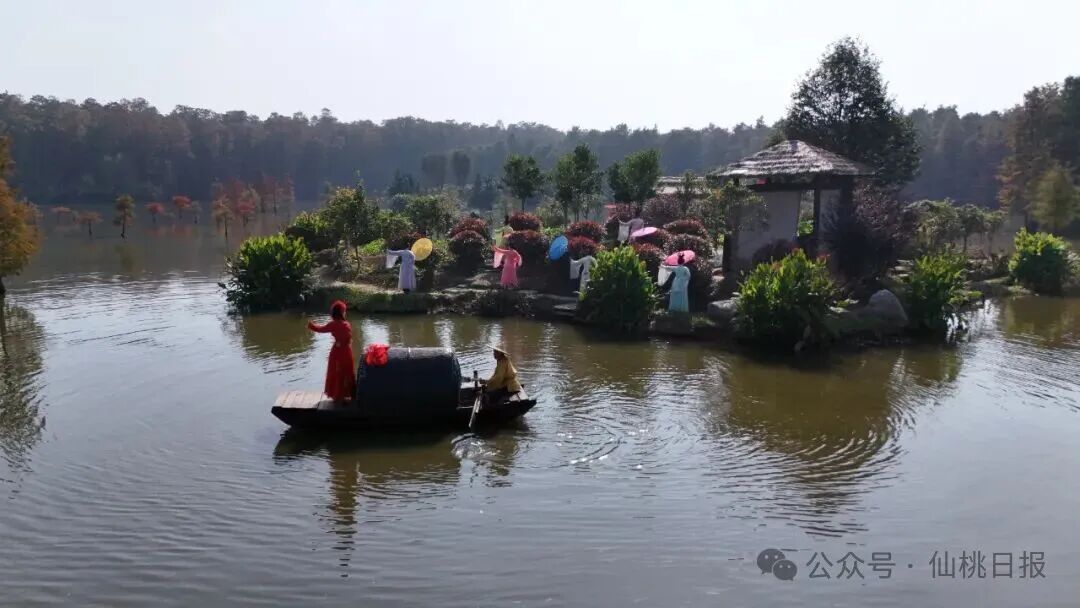 秋阳和煦,层林尽染。仙桃梦里水乡景区换上 “秋装”,秋景与水乡风情交融,构成独有的“秋意梦境”。这里成了众多旅客争先打卡的胜地。
