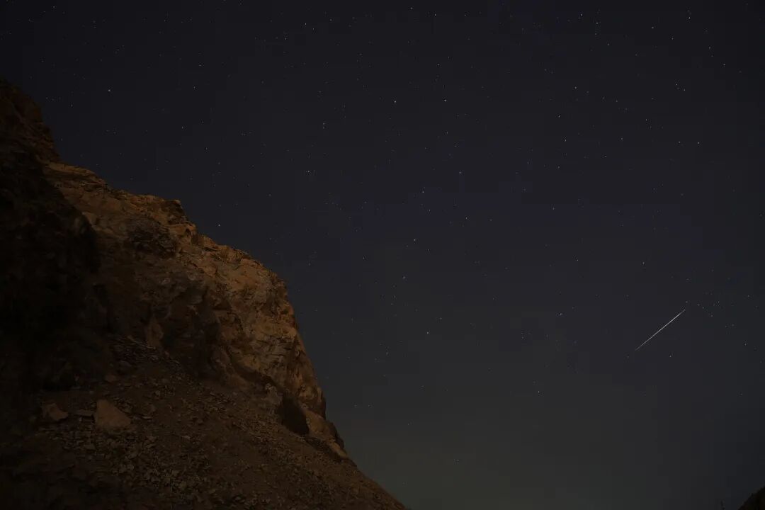 △2020年11月17日晚,新疆巴音郭楞蒙古自治州库尔勒市孔雀河畔,狮子座流星雨划过天空。
