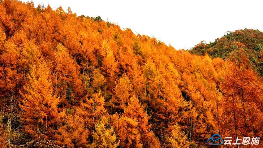 深秋时节,海拔1700米的宣恩县椿木营乡秋意浓浓,层林尽染,宛如一幅山水画卷,成为秋游爱好者争相打卡的精品路线。放眼望去,一片片、一层层落叶松在夕阳的照耀下映衬出色彩斑斓的壮观景色。