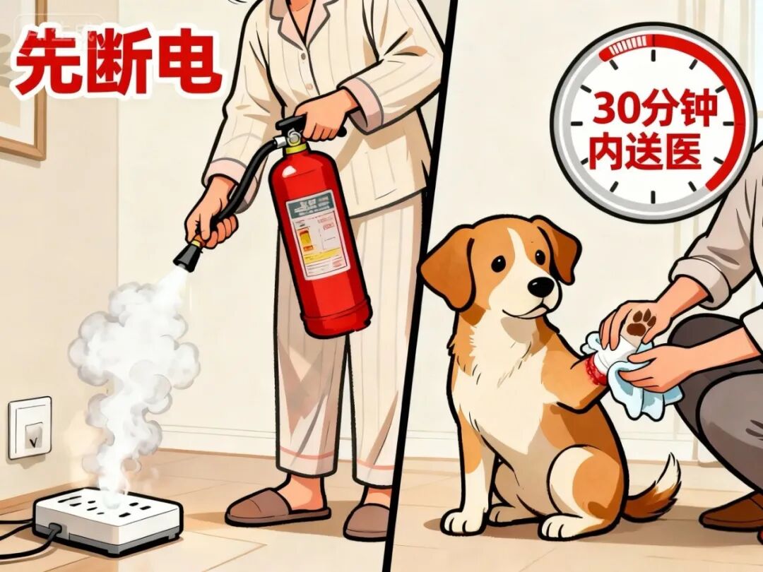 毛孩误碰电器,触电/烫到爪爪?第一步必须断电源!轻度烫伤,用凉毛巾冷敷15至20分钟;重度烫伤,30分钟内赶紧送医,别耽误黄金救治时间。
