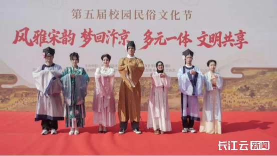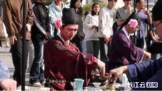茶香氤氲,词韵悠扬。近日,以“风雅宋韵 梦回汴京”为主题的校园民俗文化节在武汉轻工大学拉开帷幕。师生们身着雅致宋服,体验投壶簪花之乐,品味七汤点茶之妙,在沉浸式的互动中完成了一场与历史的对话。