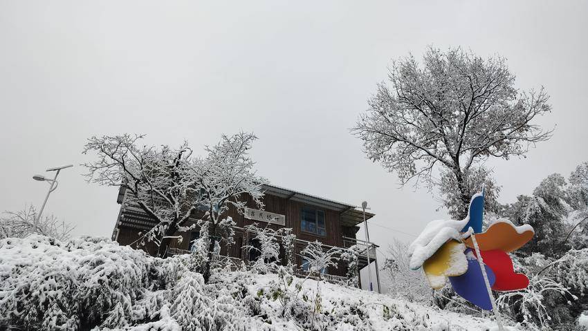 11月17日,湖北襄阳谷城县赵湾乡迎来了入冬后的第一场降雪。纷纷扬扬的雪花从清晨开始飘落,将山峦、田野和屋舍装点成一个银装素裹的童话世界。