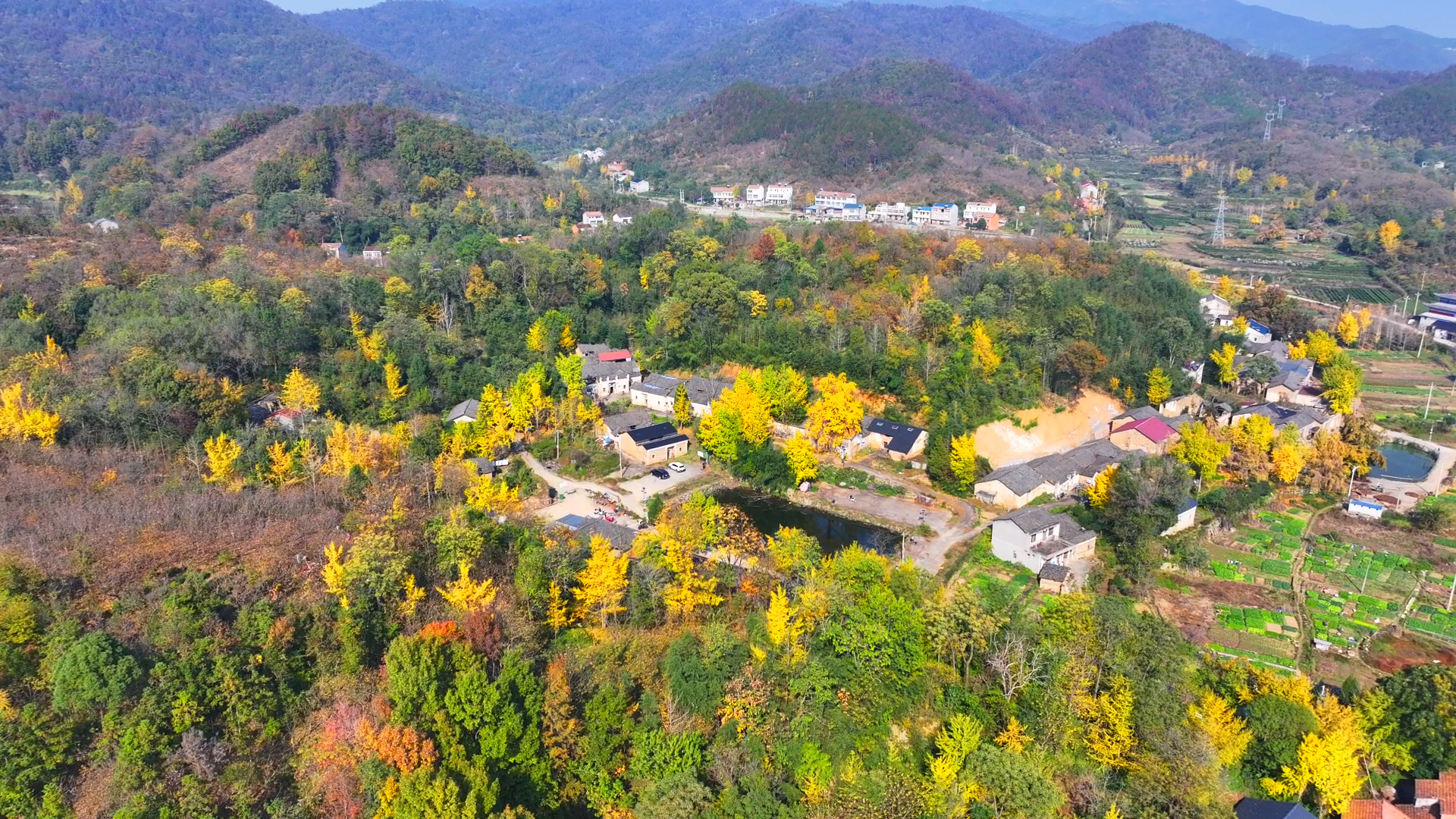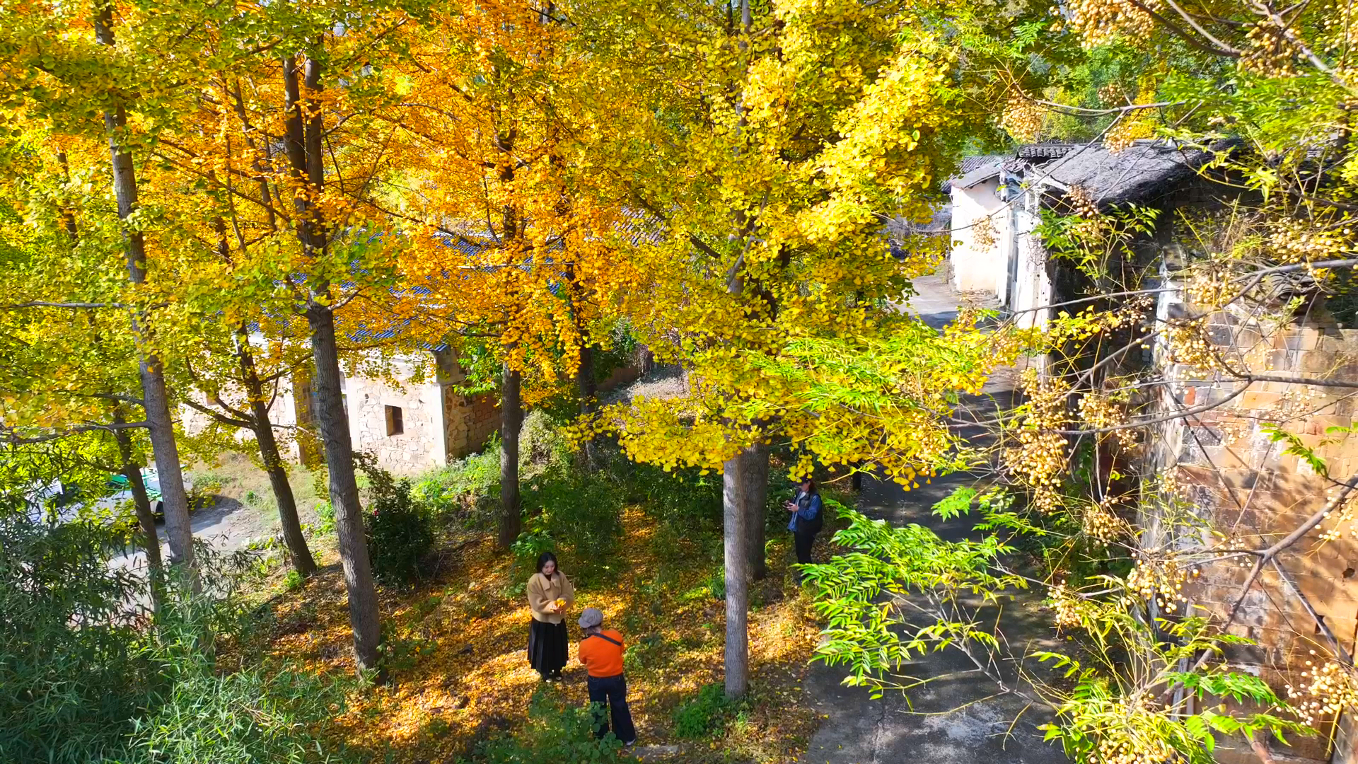 走进孝昌县小悟乡项庙村,仿佛步入了一个金色的童话世界。树龄逾千年的古银杏群披上“金装”,片片黄叶随风摇曳,洒下一地金黄。古朴的民居与参天古木相映成趣,构成了一幅迷人的秋日画卷。