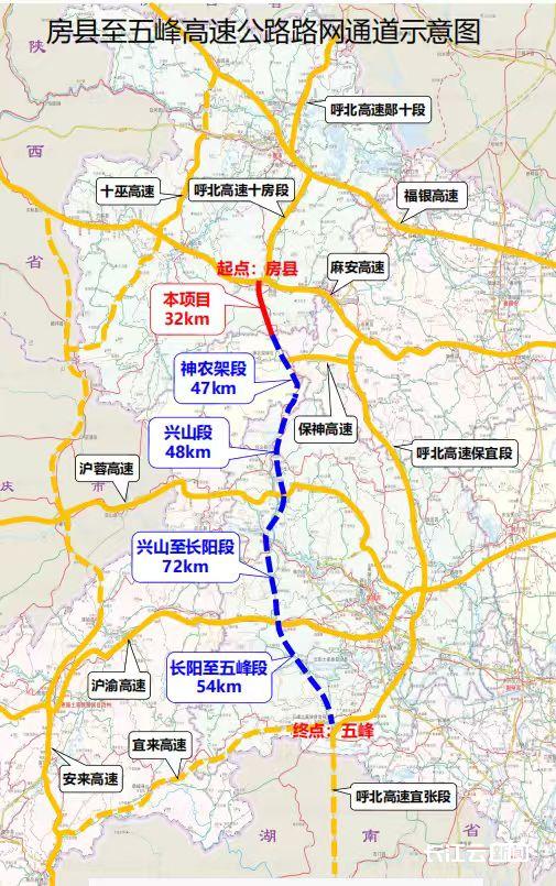 房五高速公路房县段是《湖北省综合交通运输发展“十四五”规划》确定的重点建设项目,由湖北交投集团投资建设。作为房县至五峰高速公路的重要组成部分,该段与神农架段、兴山段、兴长段、长五段共同构成南北交通大动脉。项目起于十堰市房县城关镇莲花村,顺接G59呼北高速十房段,经军店镇、红塔镇、野人谷镇进入神农架境内,与拟建的G5912房五高速神农架段相接,全长约31.446公里,桥隧比高达79.8%。主线采用设计速度80公里/小时、路基宽度25.5米的双向四车道高速公路标准,总投资约63.85亿元。