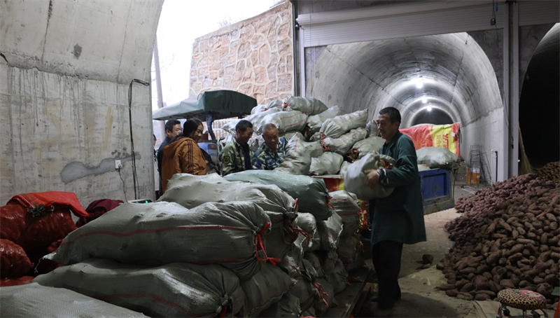 为保障红薯品质,当天采收的鲜薯会立即运往村里的仓储中心和地窖,通过低温储存锁住水分与糖分,最大限度保留“田间鲜”口感,为后续销售奠定基础。